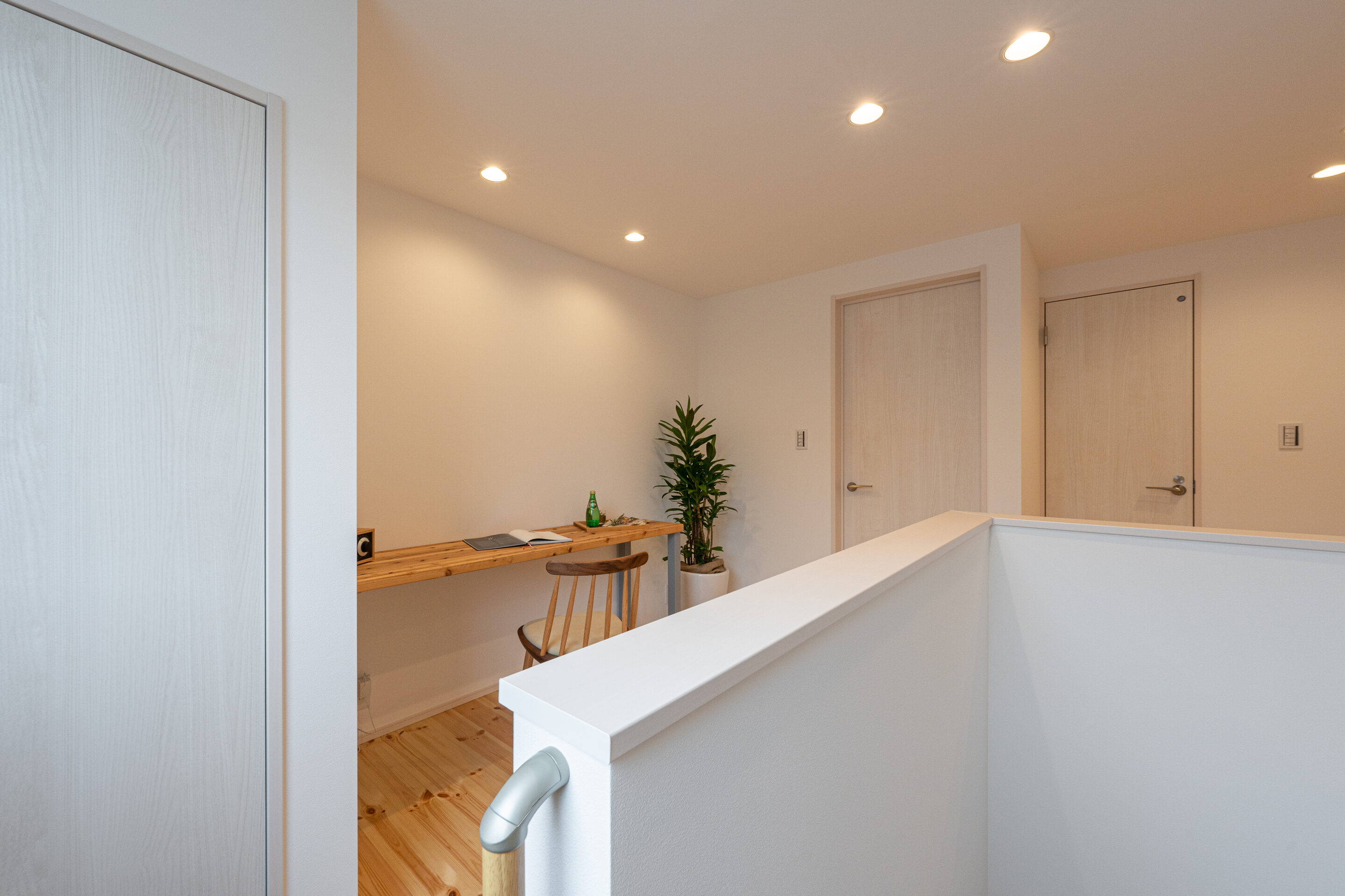 2階のフリースペースに設けたスタディコーナーは、学習や仕事など、ライフステージに応じて柔軟に使えます。