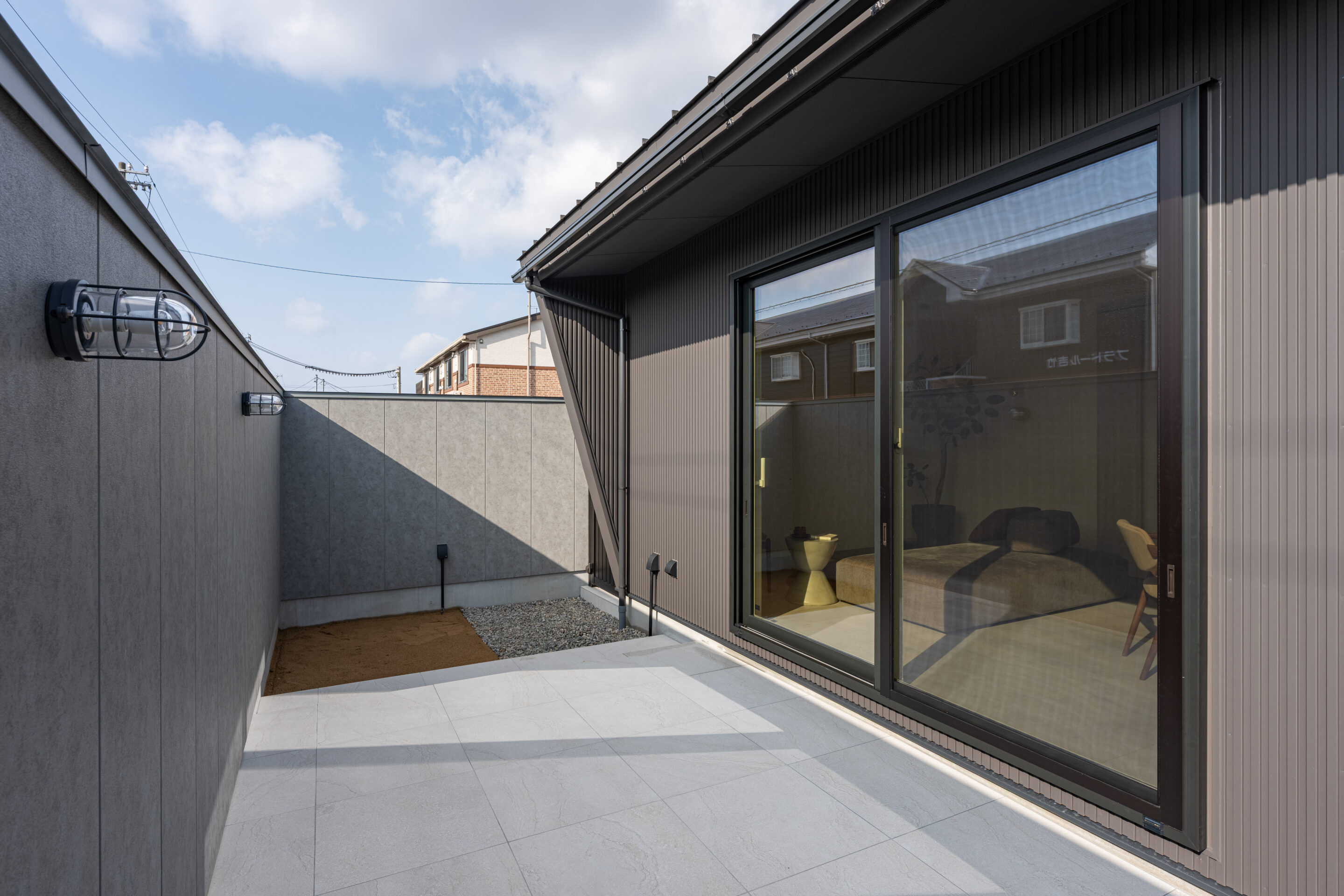 囲い庭があることで、外からの視線を気にせず、日中もカーテンに頼らず過ごせる空間です。