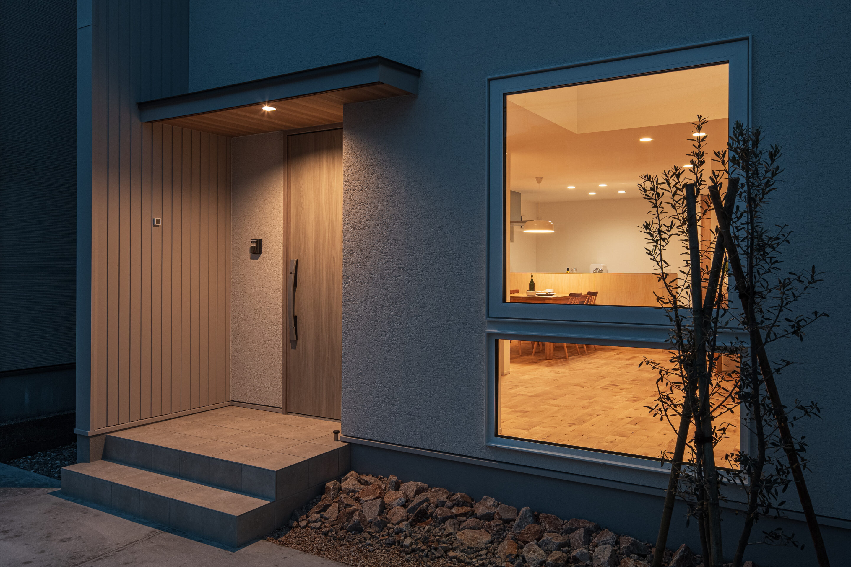 塗り壁があたたかく迎えてくれる玄関アプローチ
