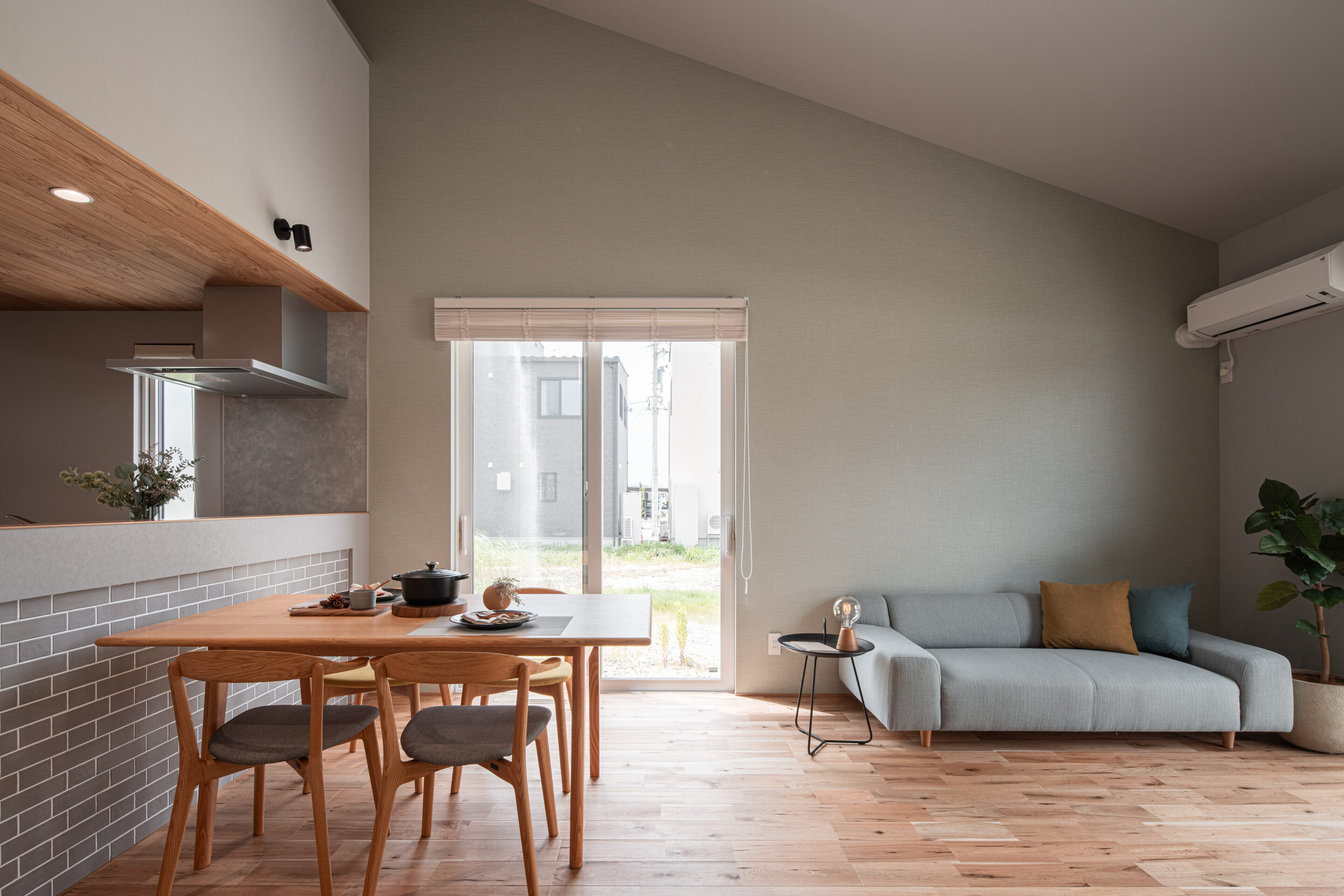 吹き抜けと勾配天井がもたらす、解放感あふれるLDK