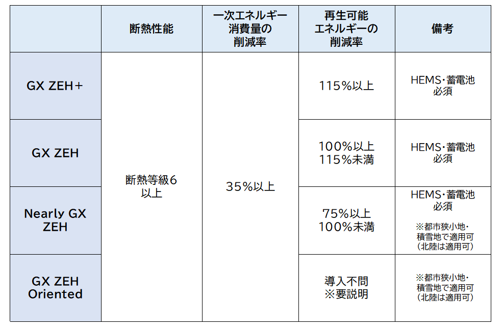 特に北陸エリアでは、GX ZEHも同じようにOrientedの項目があるため、太陽光発電や蓄電池の導入がなくとも、「GX ZEH Oriented」として適用自体は可能ではあります。