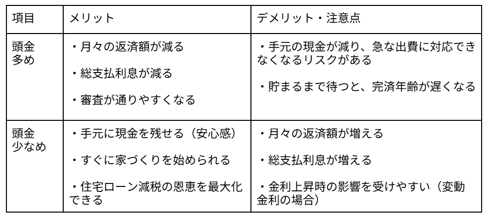 ・頭金を多く入れすぎて手元の現金を失うのはリスクであり、不測の事態に備える「生活防衛資金」を確保した上で、適切な頭金の額を設定する必要があります